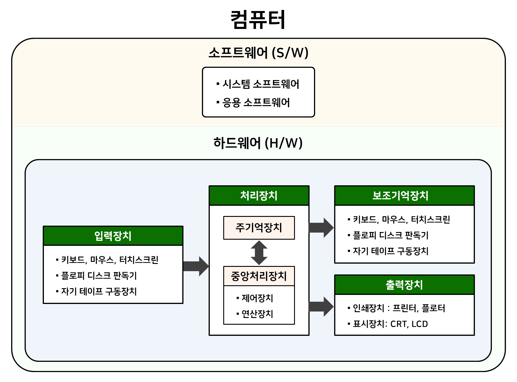 컴퓨터의 구성은 하드웨어와 소프트웨어의 결합체라고 볼 수 있다.