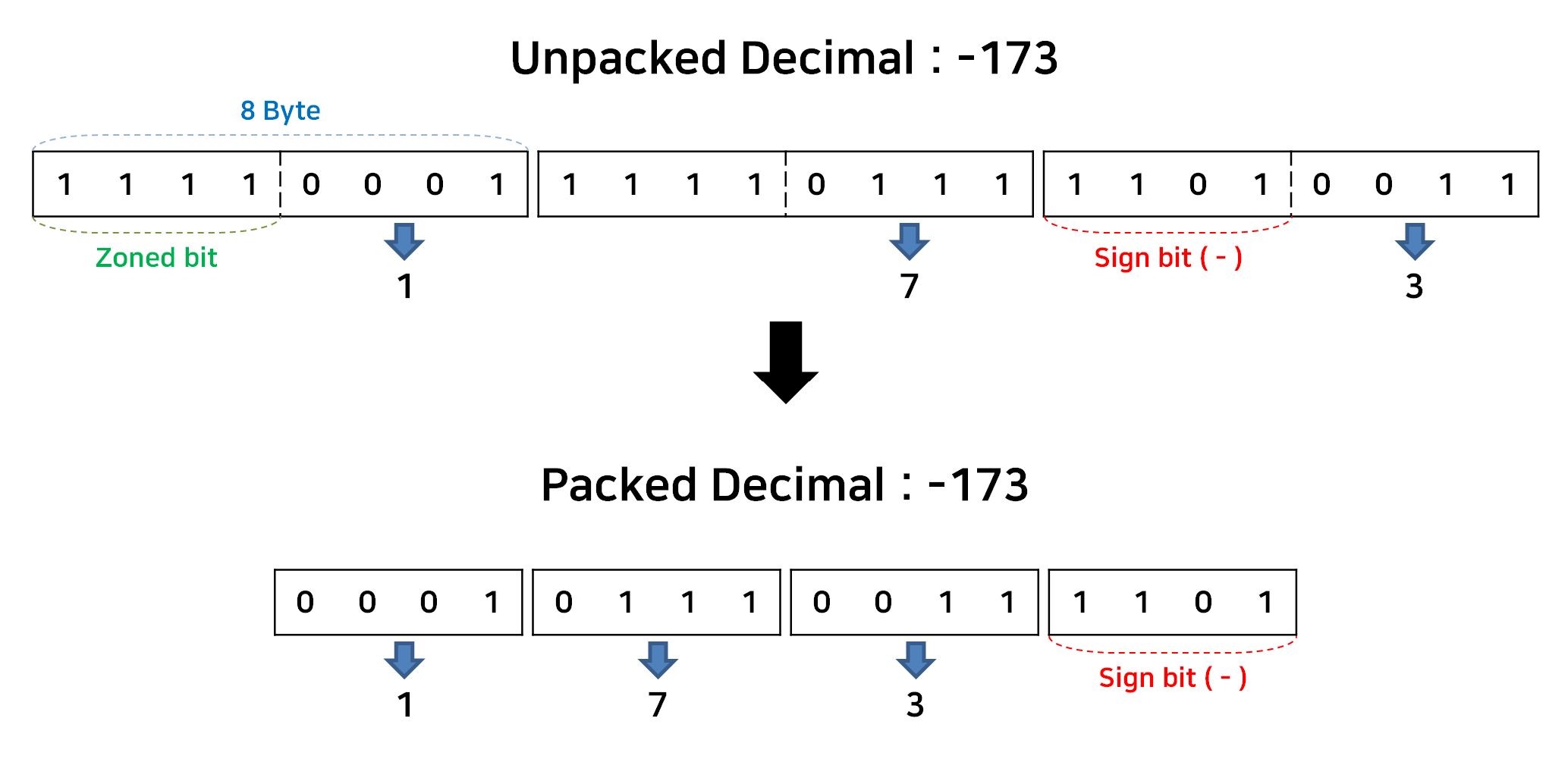 Unpacked Decimal 을 연산에 사용하기 위해 Packed Decimal 로 변환하여 사용하기도 한다.