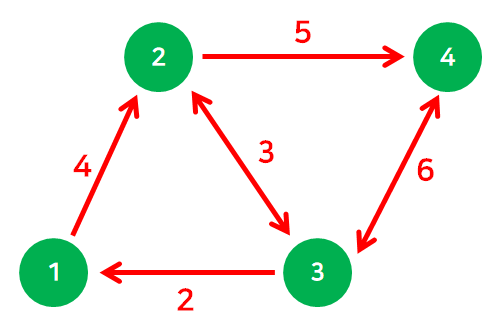 - 모든 간선의 방향과 가중치가 행렬에 있기 때문에, 이동 가능 여부와 가중치 파악에는 $O(1)$ 의 시간복잡도를 가진다.