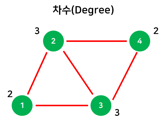 차수(Degree) 는 정점에 연결된 간선의 수를 뜻한다.