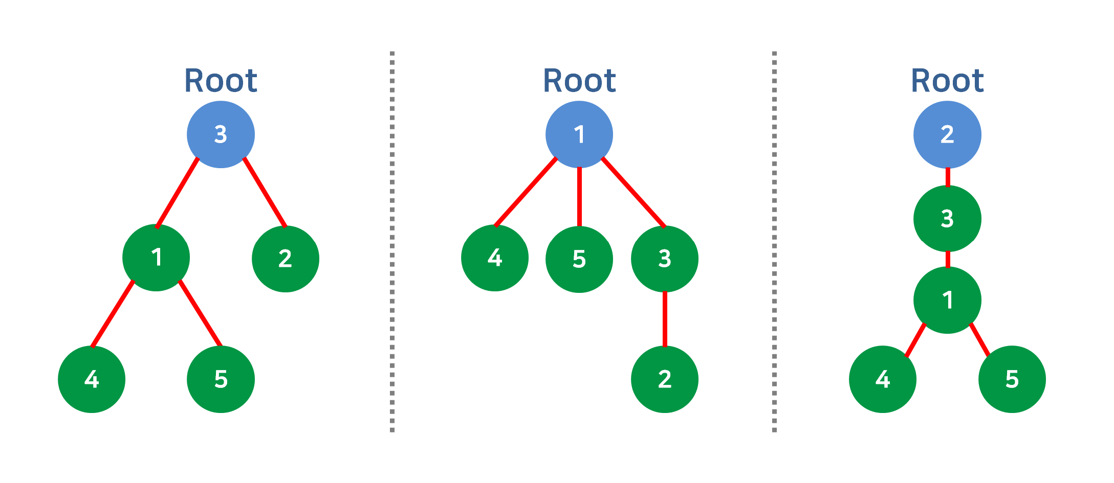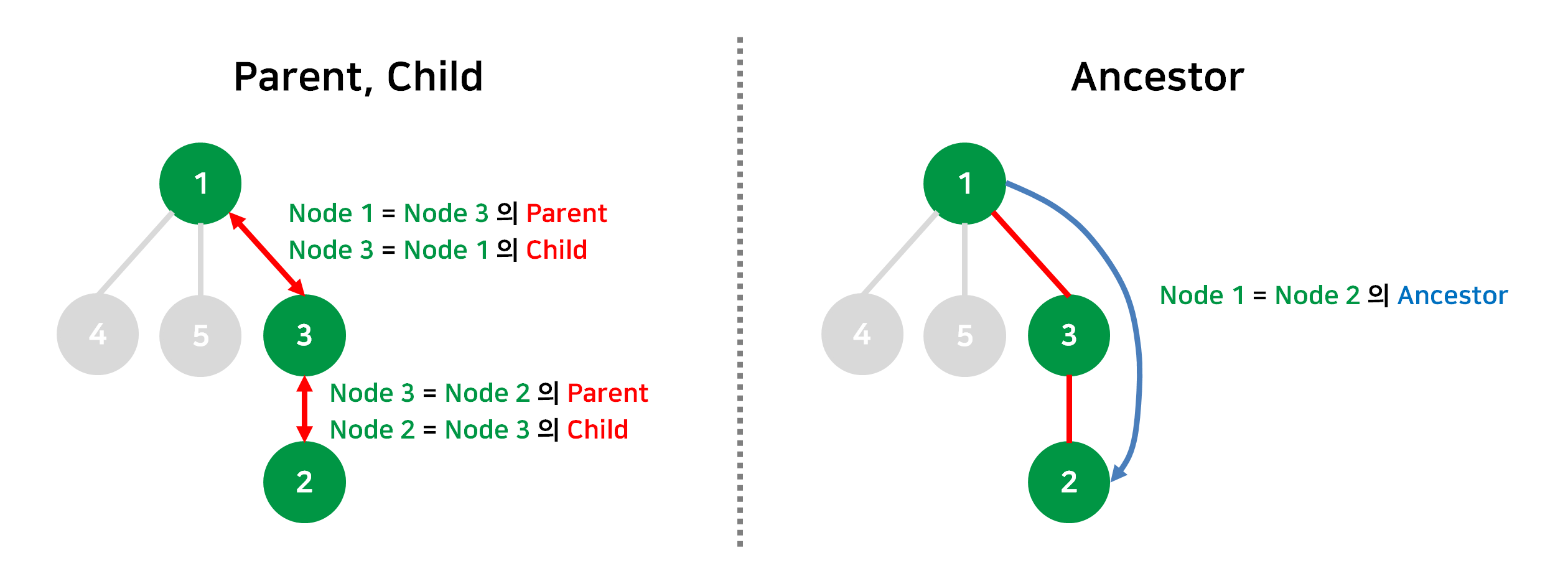 - Root : 단어의 뜻 그대로 뿌리 노드, 즉 트리의 최상위 노드를 뜻한다. 다만 이 노드는 같은 그래프 구조라도 문제에서 주어지는 기준에 따라서 달라지는 부분이라고 봐야 할 것 같다.